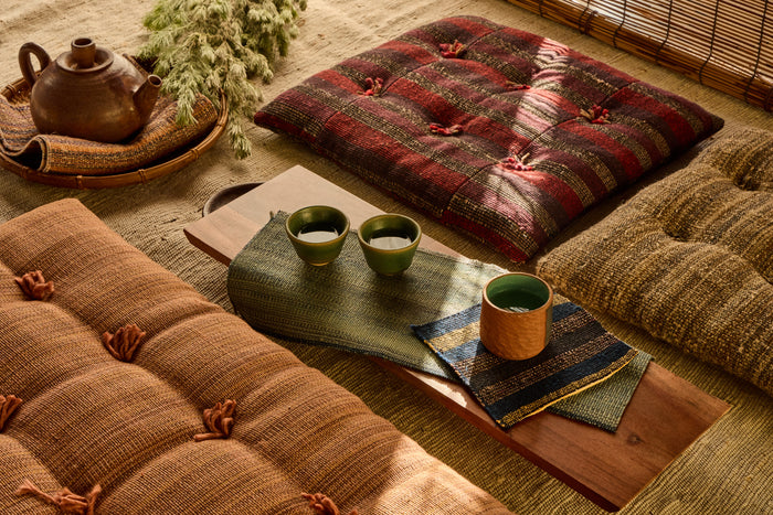 Pause and linger as jute, cotton and silk come together to create a joyful meditation.