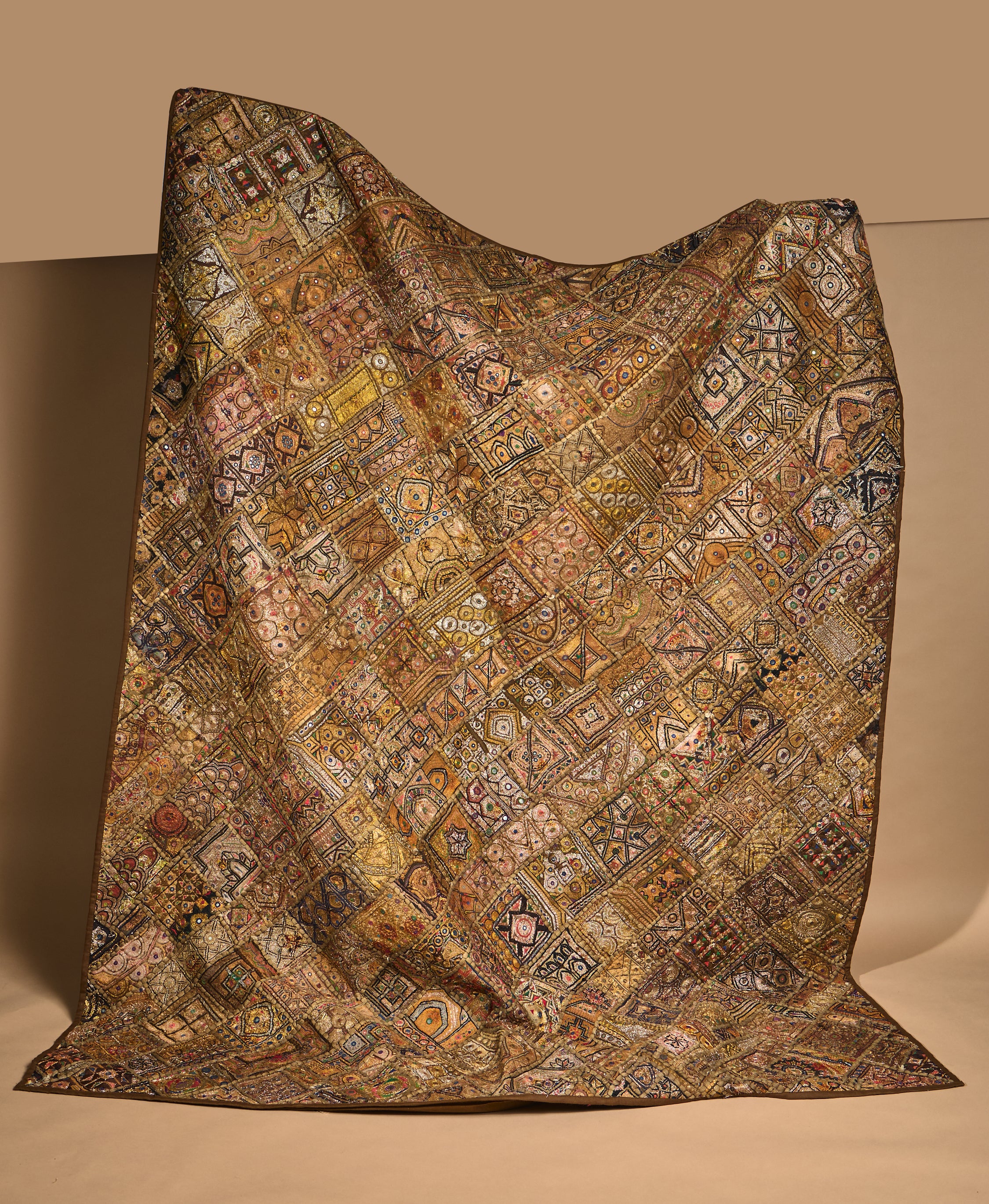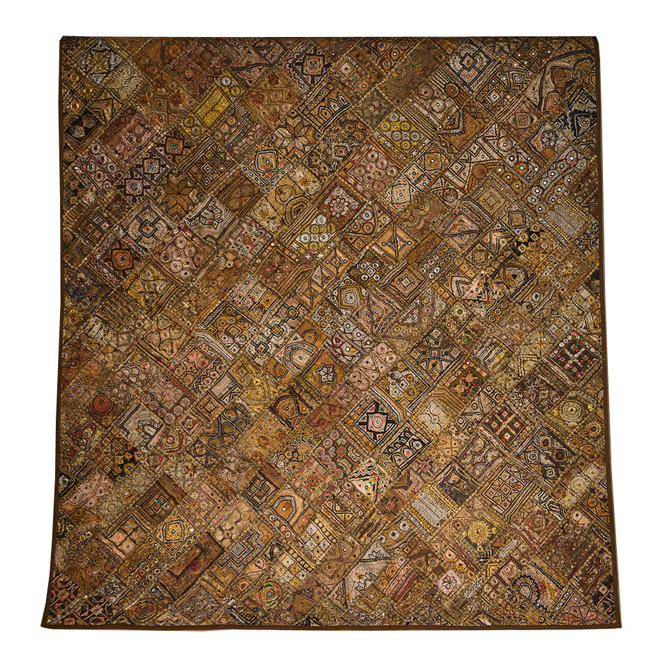 Exquisite vintage Indian metallic embroidered textile from the 70s. Unlike poor imitations found today, this piece is the real deal, with exceptional patina, materials and craftsmanship. A stunning tapestry that can be layered over a bed, repurposed into a headboard or hung unapologetically on a wall.